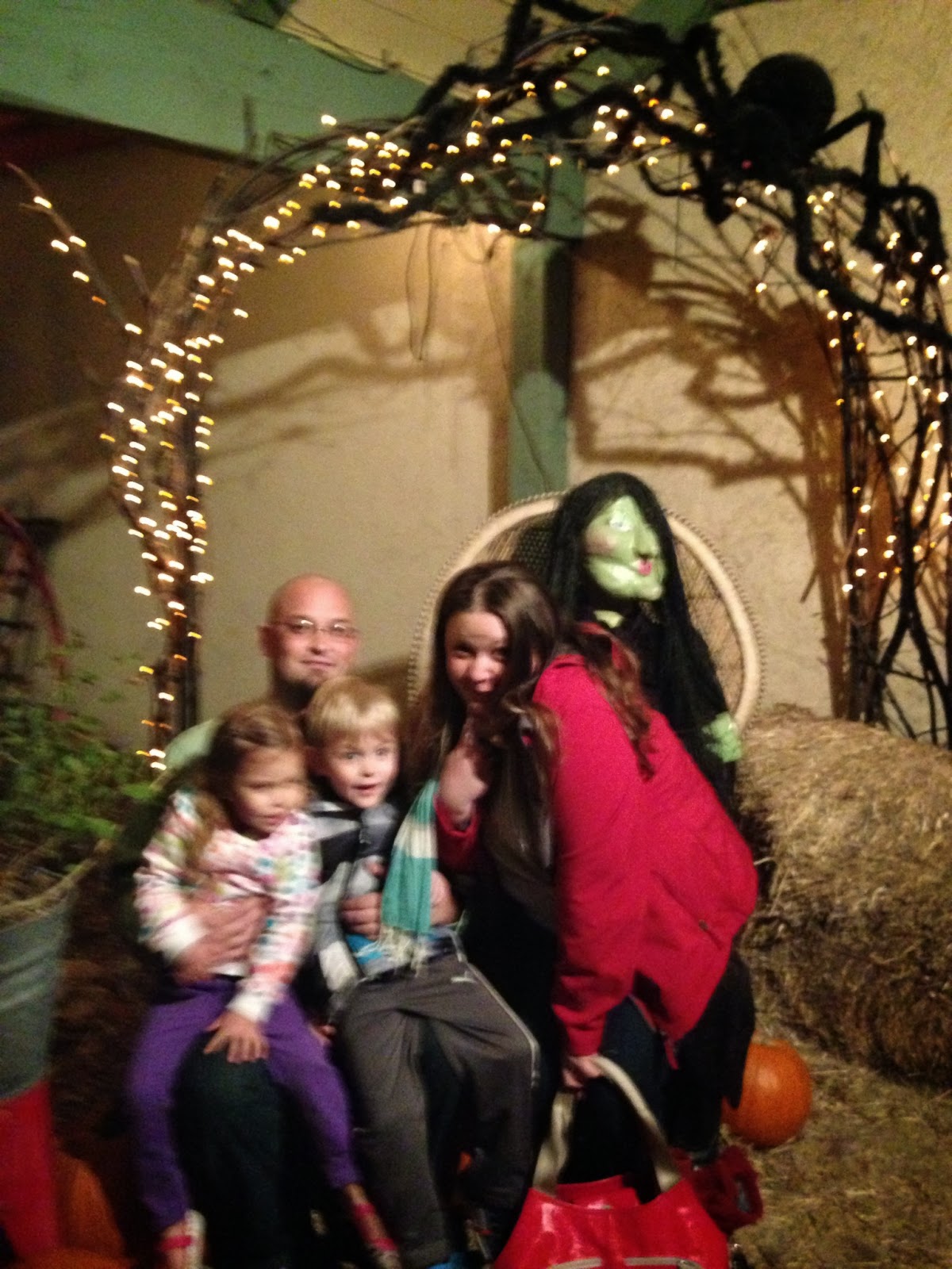 Another fun family event we did this month was our annual trip to Gardner Village to see the witches. Mike, Jenessa, Chris, & Cassy came along to see the witches, and the kids reactions to them. Grandma Cassy paid for the kids to go on a pony ride, and they loved it. Aubrey got to ride on Silver, and Jayden on Snowflake. The woman who led the horse around for Jayden just got a kick out of his stories. She told me I should take him to a storytelling festival they have nearby because he would do great. He does tell a good story, and he is so animated about it. I need to be better about taking videos of his stories so I can share them with everyone.